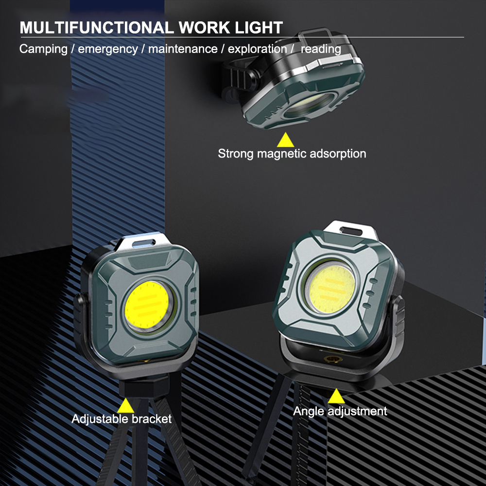 9. Features: Bottom with magnet and bracket hole. Electric quantity indicator light, with a rope hole on the top, 360 degree adjustable bracket, IP44 waterproof.